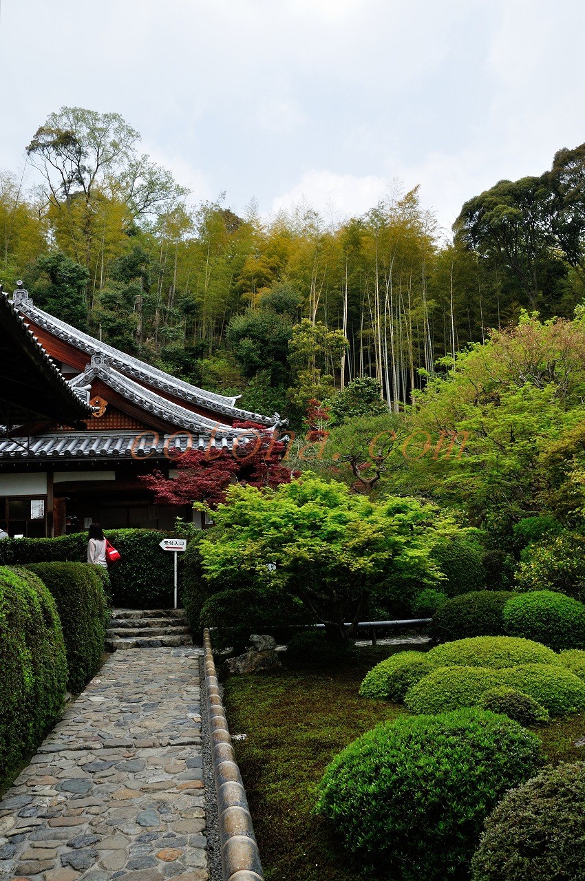 様々な種類の竹を集めた庭園や、わらじをはき、願い事を一つだけ叶えるという「幸福地蔵」、僧侶による参拝者への茶菓のもてなしと鈴虫説法等も有名で、京都市内の寺院の中でも特に積極的な拝観者招致策を展開し、成功した例としても知られる。