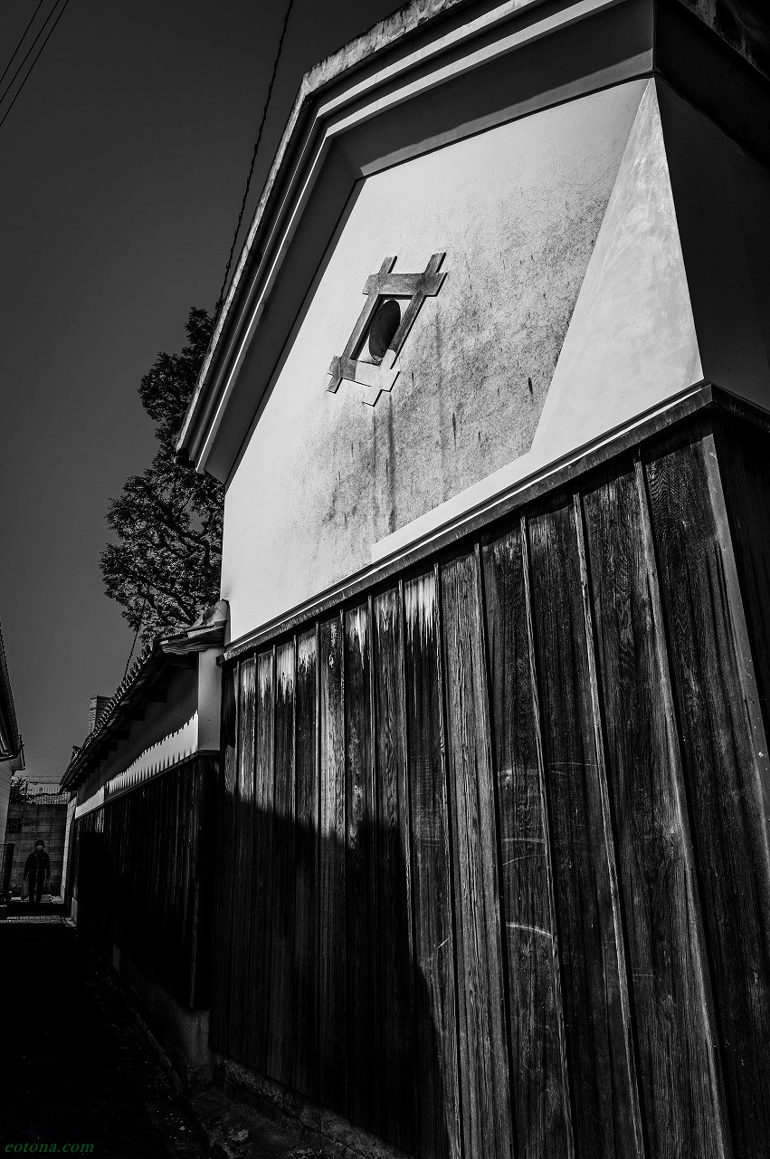 名残をしめす銀行の蔵が残り、その石積みにお多福亀甲の彫刻があります。