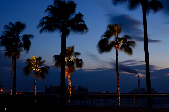 南国フード漂うO’Sパーク、トワイライトブルーの空に輝く。