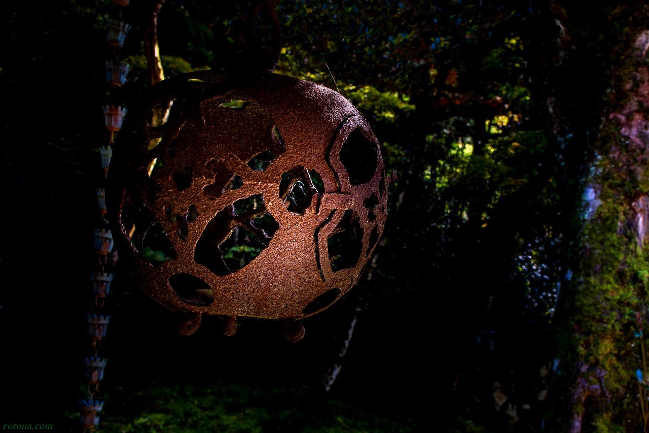 軒先に吊るされているのは鉄製の灯篭だろうか、涼やかな意匠が風流を誘う。