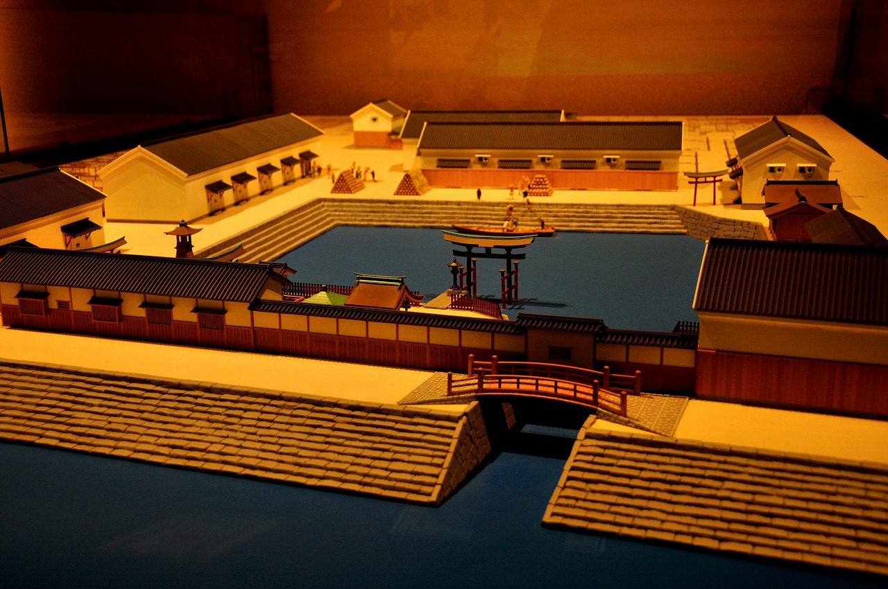 広島藩大坂蔵屋敷復元模型、大阪大学医学部のあったところは広島藩の蔵屋敷があったところで舟入跡が見つかっている。