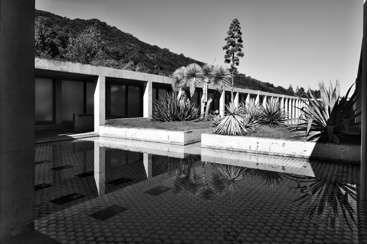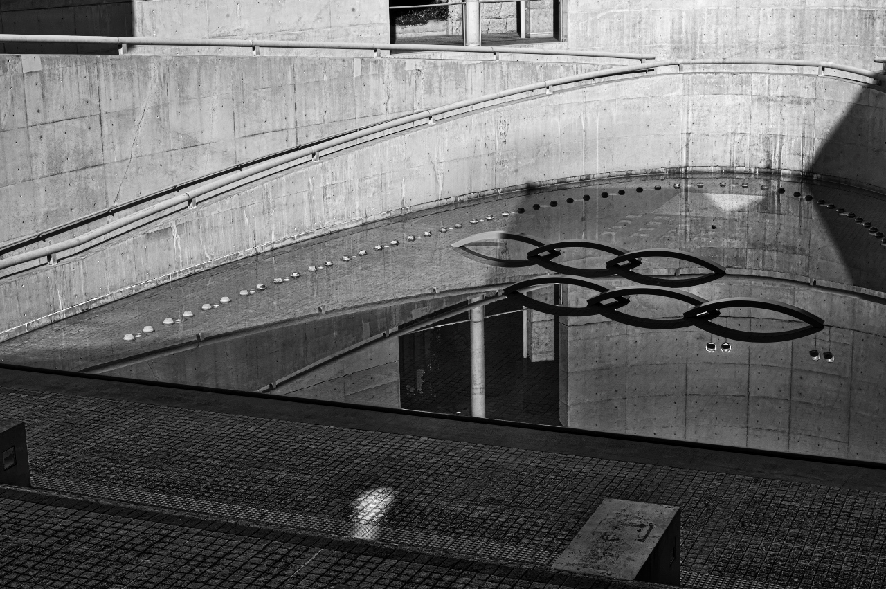水の反射が天井を揺らし 太陽が時間を描く 建築は自然を拒まず 自然は建築を包み込む
