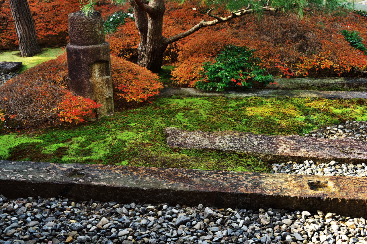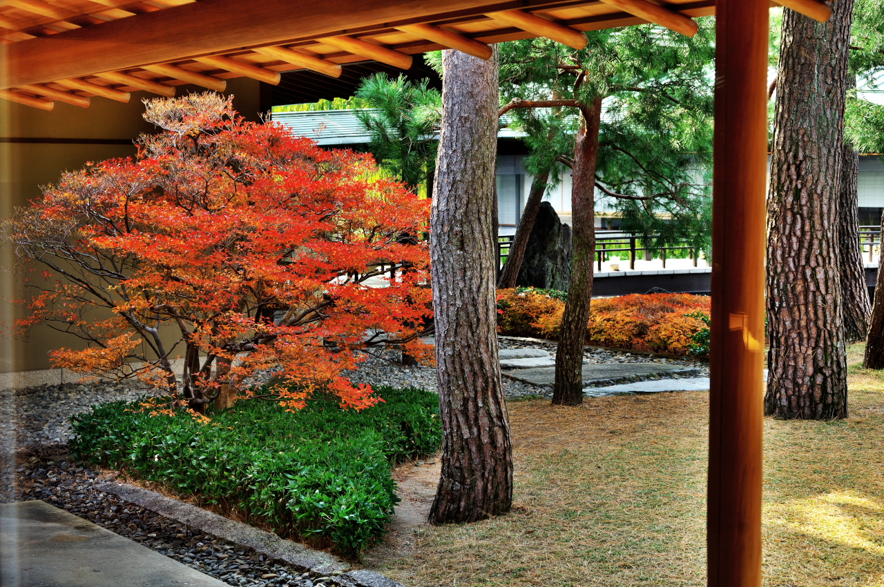 公家屋敷跡や茶室と紅葉が織りなす景観は、京都ならではの格式ある秋の風情。