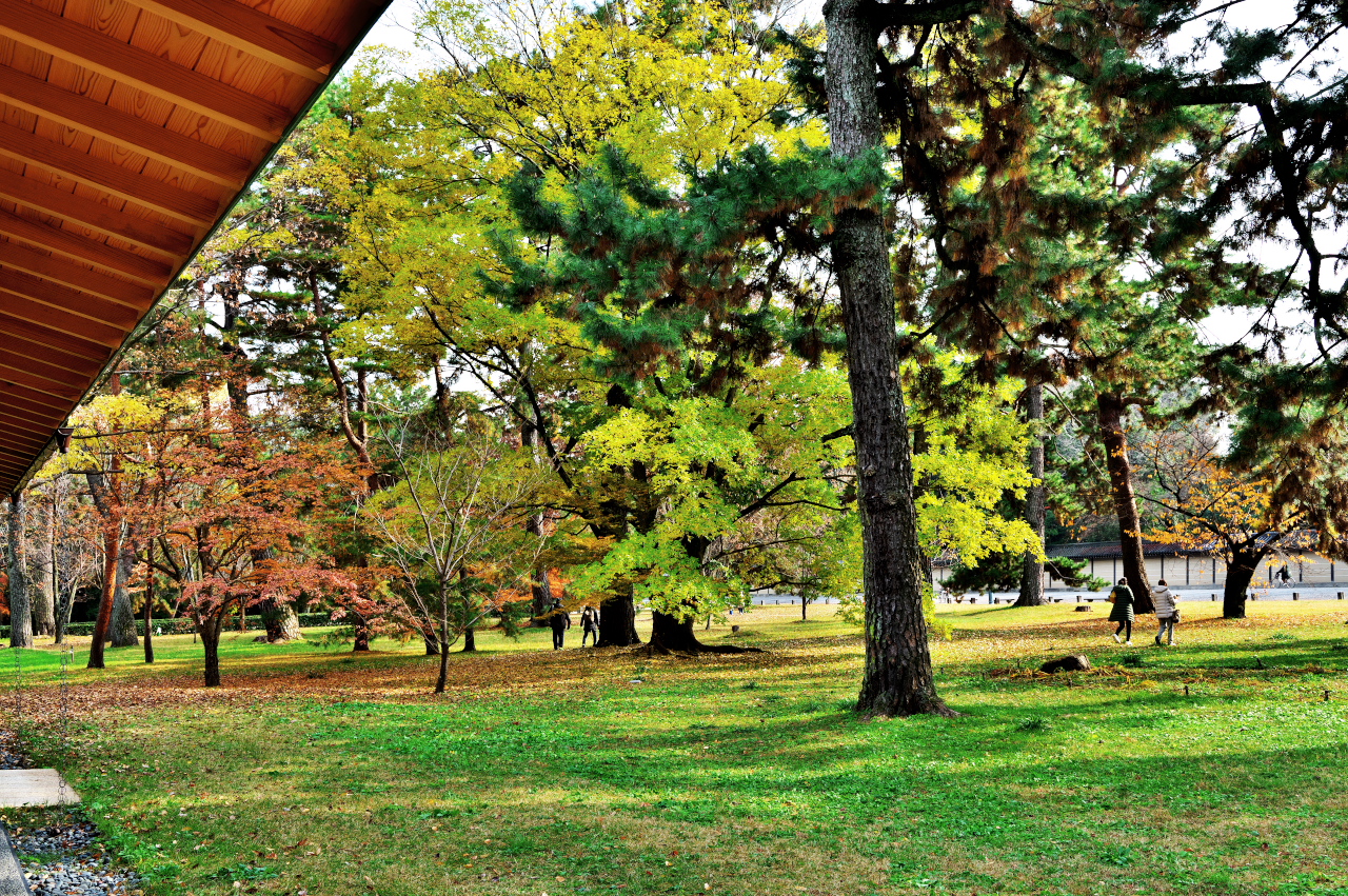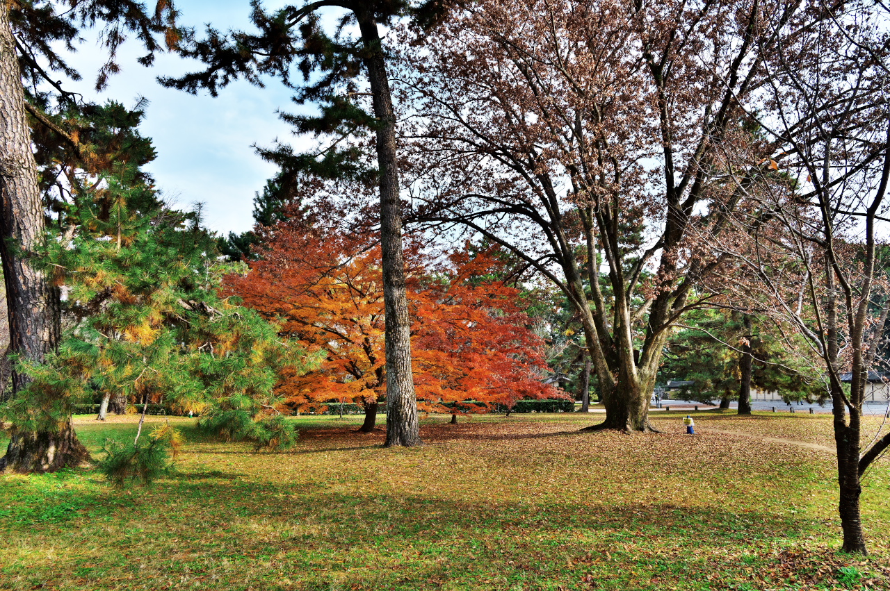 秋は紅葉やイチョウの黄葉、冬にはサザンカやロウバイと、四季折々いつ訪れても美しい京都御苑。