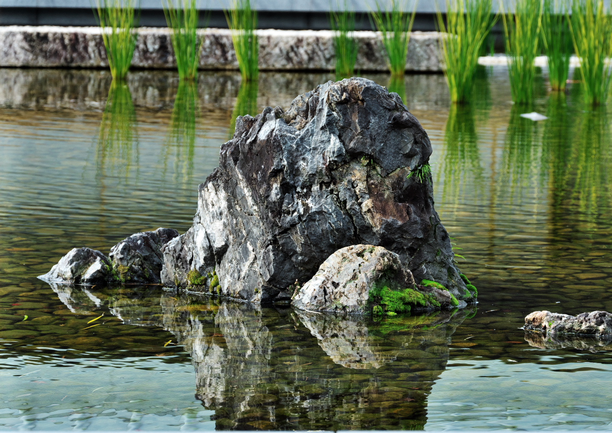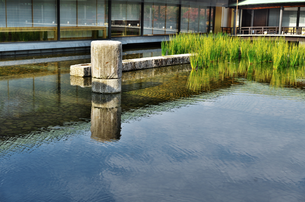 池の浅さを考慮して底が平らに作られており、静かな水面に浮かぶ姿は日本の原風景を思わせます