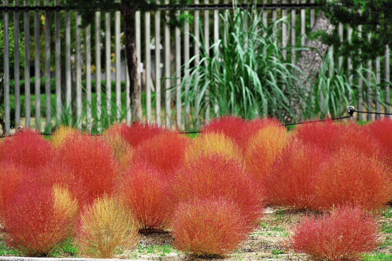 コキアは、アカザ科の一年草で、春に種をまき、晩秋に寒さで枯れるまで鮮やかな緑と紅葉を楽しむことができます