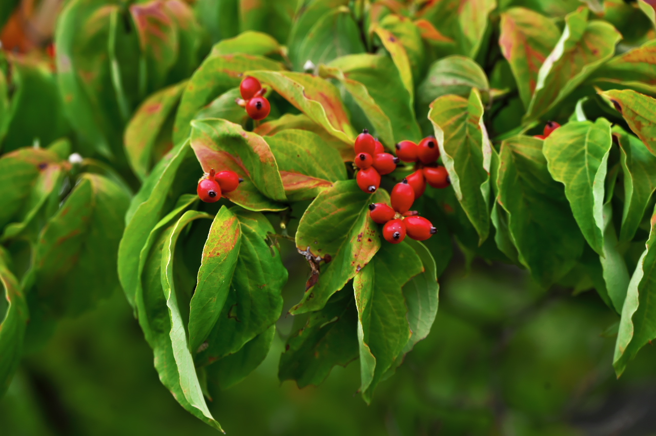 ハナミズキは、秋になると美しい紅葉を見せますが今年は少し遅れているようです。