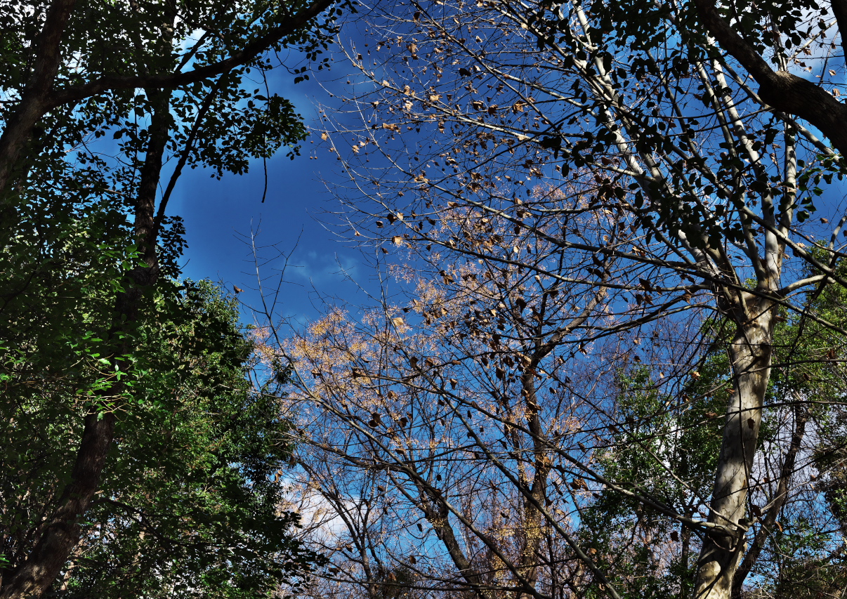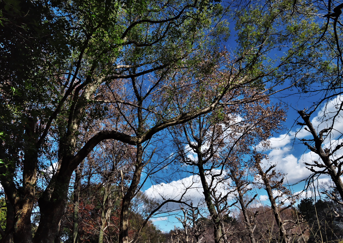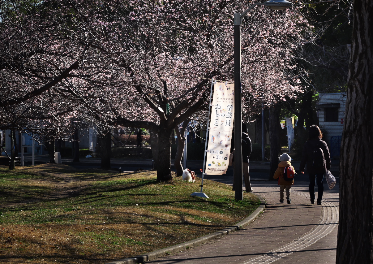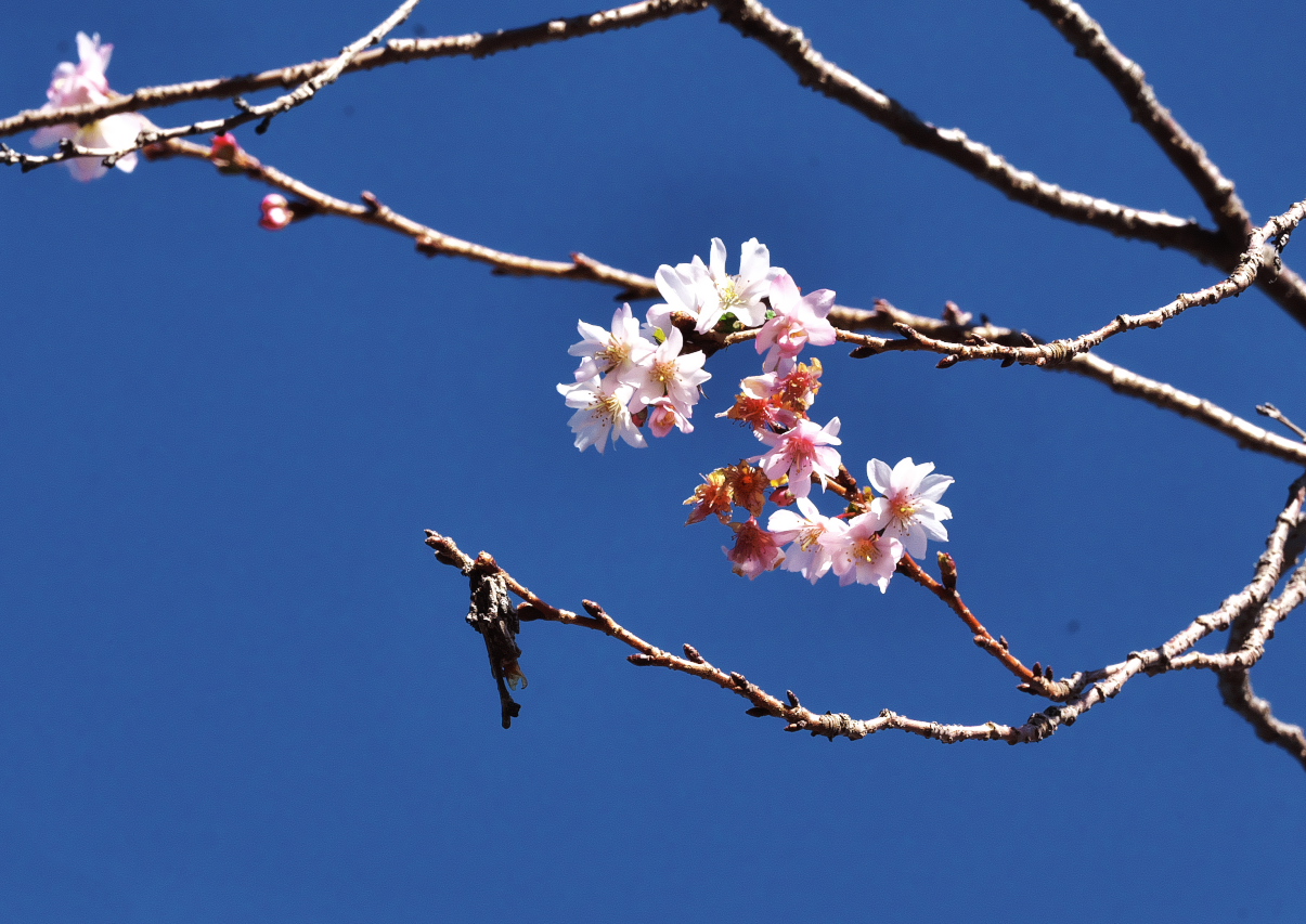 公園には10月桜が咲いています、すぐ隣には早咲きの河津桜があるがまだ蕾、開花のピークは2月中旬から下旬。
