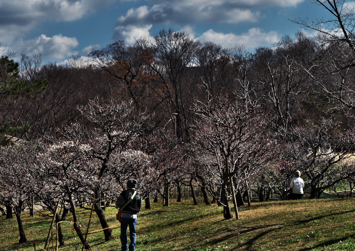 梅園では梅香崎はじめ、人々が゜観賞しています。
